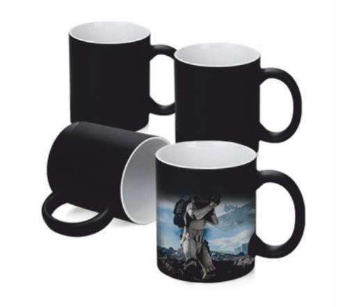 CÓD: CM006Caneca Mágica preto fosco alça redonda 325ml de porcelana