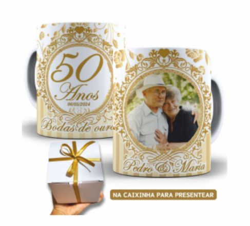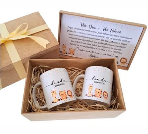 CÓD: CCL031Caixa de Luxo de MDF Convite Dindos e Formatura c/2 Canecas 180ml