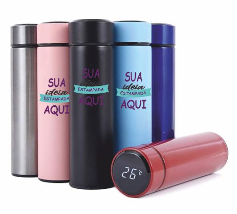 CÓD: GT029Garrafa Térmica Inox Color 500ml com Termômetro Digital