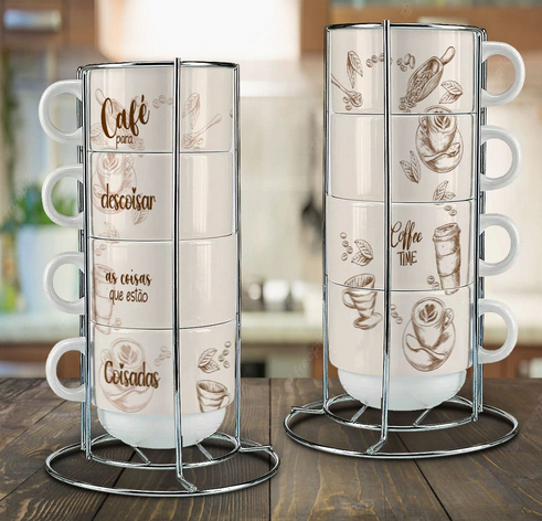 A Torre de Canecas 180ml é perfeita para quem deseja otimizar espaço e manter a cozinha ou cantinho do café muito mais elegante. Com um design moderno e vertical, ela acomoda várias canecas de forma prática e decorativa.